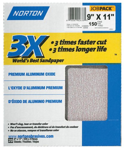 Cheap Norton 2638 Sandpaper 3X 150-Grit 9-by-11-Inch Sheets, 20 Sheets per Pack Review
