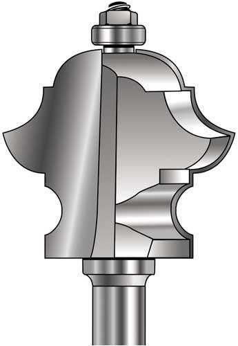 Make beautiful large and small moldings with your 1/2" shank router. This 2 flute, carbide-tipped bit with totally enclosed ball bearing guide will produce dozens of different profiles in one pass (depends on size of stock). With two or more passes the possible patterns are almost unlimited. Simply adjust the depth of cut and position of the fence to create beautiful large or small moldings. Any portion of the bit can be used to achieve the desired effect. 2-1/8" Large Diameter. 1-7/8" Carbide Height. 1/2" Shank.