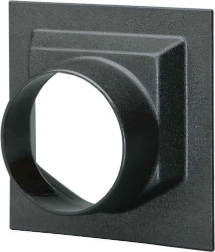 This 6 1/4" x 6 1/4" hood has a 4" outlet. It works especially well on table saws with cabinet-type stands. Simply cut out an opening on the bottom of the cabinet and attach using our two-sided tape.
